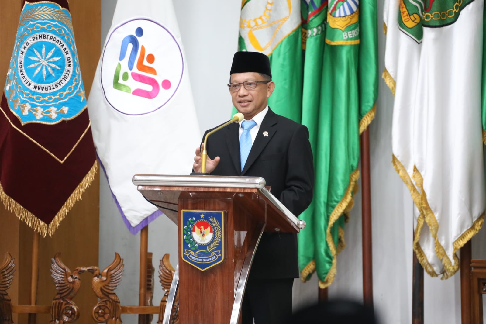“Kadang-kadang pemerintah pusat juga ada banyak sekali program, tapi enggak punya kaki di lapangan. Kemenkes enggak punya banyak kaki di lapangan, Kementerian Pendidikan enggak punya banyak kaki di lapangan, Kementerian Sosial enggak banyak kaki di lapangan. Mereka membutuhkan [PKK] dan mau ngajaknya PKK terus. Karena tahu PKK, kekuatan ibu-ibu ini hebat,” kata Mendagri.