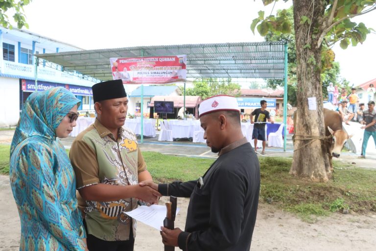 Aktivisnews.id-Simalungun Dalam rangka memperingati Hari Raya Idul Adha 1446 H/2025 M, Polres Simalungun menggelar kegiatan penyerahan dan pemotongan hewan kurban di halaman Kantor SATPAS Satuan Lalu Lintas Polres Simalungun, Jumat (5/6/2025). Kegiatan ini merupakan wujud nyata implementasi program “Polri Untuk Masyarakat” dan Polri Presisi yang mengedepankan kepedulian sosial.