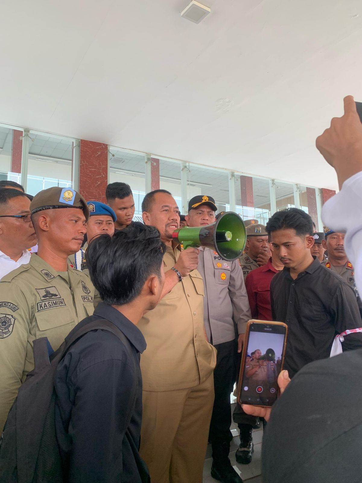 Menyikapi aksi tersebut, Bupati Batu Bara H Baharuddin Siagian SH MSI di hadapan ratusan massa yang menamakan dirinya Aliansi Masyarakat Kampung Kebun Kelapa, Desa Ujung Kubu, menyampaikan terima kasih hadir di sini dan jauh-jauh dari Nibung Hangus datang ke Kantor Bupati Batu Bara menyampaikan aspirasi ini akan kami perhatikan.
